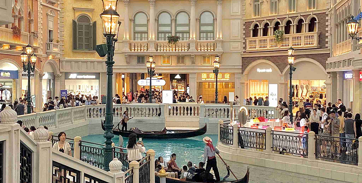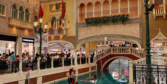 威尼斯人度假村以意大利水都威尼斯为主题,是游客到澳门的必去之处。如果你是购物爱好者,不妨来到三楼的大运河购物中心。拱桥、小运河及石板路,让人仿佛置身于昔日威尼斯的街道。两岸云集了几百家大牌购物商铺,你可以在此尽情享受买买买的乐趣。