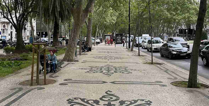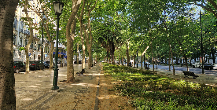 自由大道(Avenida da Liberdade)位于巴沙区 ,宽90公尺,长近 1.2公里,路上镶嵌美丽的彩绘地砖,路旁行人道棕榈树、椰子树等绿树成荫,两旁尽是高级酒店,若要享受一顿高级浪漫的晚餐,情调一流。 背面则为爱德华七世公园(Parque EduardoⅦ),站在公园高处向下远眺可看见彭巴侯爵广场(Praca Marques de Pombal),由此往南可贯通到里斯本新规划的规格化市区,巴夏(Baixa)区和罗西欧(Rossio)区,这两区是西元1755年大地震之后重建的新区。自由大道把里斯本划分为两大区,东边偏南的这一片称为阿尔法玛(Alfama)区就是旧城区。自由大道西侧大致可分可分南北两大区,靠北的巴洛奥尔多(Bairro Alto)区(高地区)及偏南的奇亚多(Chiado)区。自由大道有葡萄牙“香榭丽舍大道”之称。