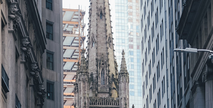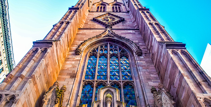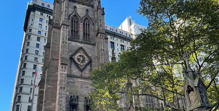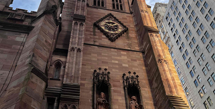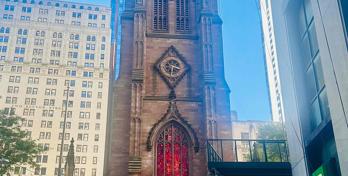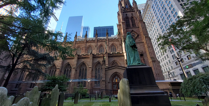 Trinity Church位于卡普利广场中央,建于1697年,高达26,精致的彩绘玻璃,玫瑰色砂岩的外观,壮丽的拱形铜雕大门以及雄伟的钟塔,这些都曾让它风光一时。作为美国首座查德森罗马式(Richardsonian Romanesque)建筑风格的教堂,三一教堂于1885年被选为美国十大建筑之一,一百年后美国公众再次票选全美十大建筑的时候,三一教堂再次入选。