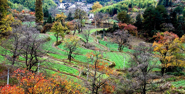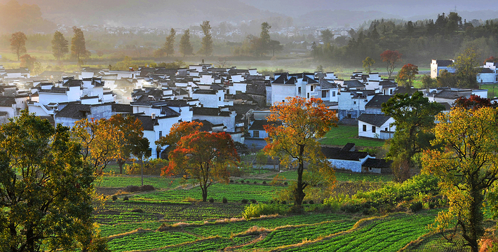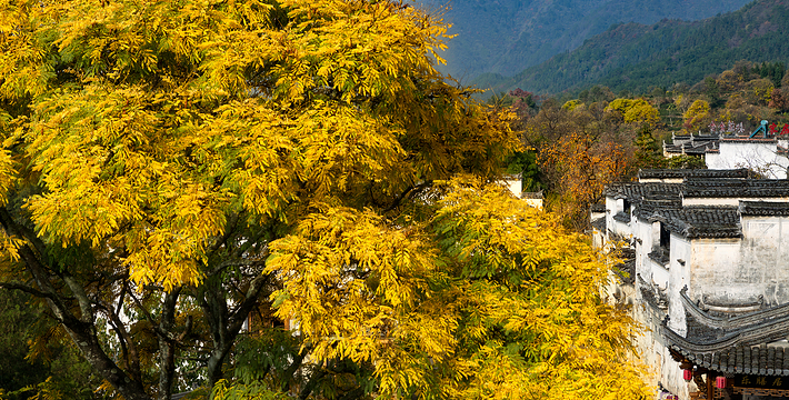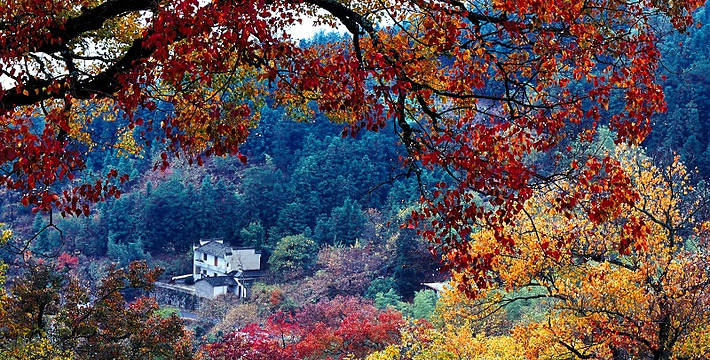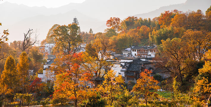 以秋色著称的徽派小村