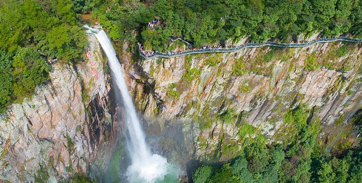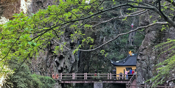 溪口雪窦山名胜区因是现代历史人物蒋介石父子的故里,更兼风光秀美,不乏史迹而名闻国内外,成为旅游热地。该风景区位于距宁波市西南31公里处,这一旅游区分为溪口镇、雪窦山、亭下湖各具特色的三大部分。落地围东起溪口镇王婆桥,西至四明水库,北起相量岗林场,南至亭下湖分水岭。溪口镇是蒋介石的故乡,是一个建置千余年的山乡古镇,这里四面环山,三里长街依一脉剡水溪流横贯东西。武岭头与剡溪南岸的笔架山对峙,形成溪流溢口,故名溪口”之誉的雪窦山景区地处四明山东缘,海拔600多米,山岙灵秀,岩壑雄奇,瀑布绚丽,林泉幽深。山上乳蜂呈窦,水如乳从窦出,故名雪窦。在入山亭、御书亭、含珠林、锦镜池、相量岗等自然景观和人文景观中,尤其以雪窦寺、妙高台和千丈岩瀑布引人瞩目。雪窦寺,古称雪窦资圣禅寺,天下禅宗十刹之一。两株汉代银杏巍然屹立寺门。寺西面中国旅行社雪窦山招待所是当年蒋介石幽禁著名爱国将领张学良将军的旧址,1988年在此址建起的雪窦山招待所,现已作为张将军事迹陈列馆开放。千丈岩瀑布:“拔地万重青嶂立,悬空千丈素流分,共看玉女机丝挂,映日还成五色文”(王安石诗)。千丈岩瀑布在雪窦寺南一华里处,以雄奇、壮观而名闻浙东,北宋真宗曾赐名“东浙瀑布”。崖顶西首上行有“飞雪亭”,可坐观飞瀑。