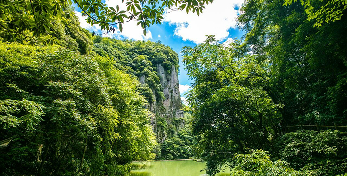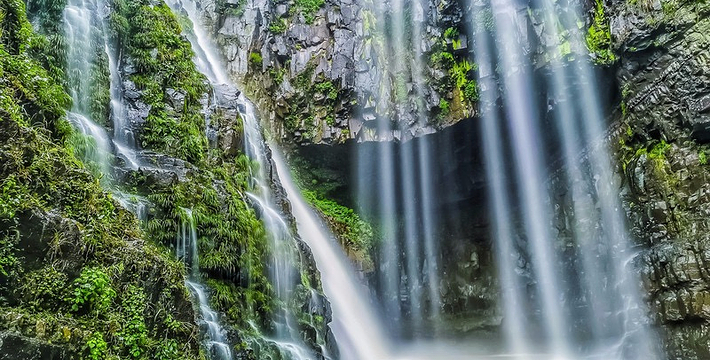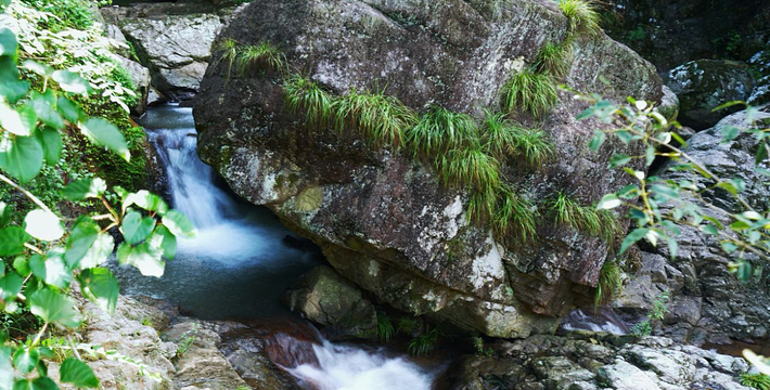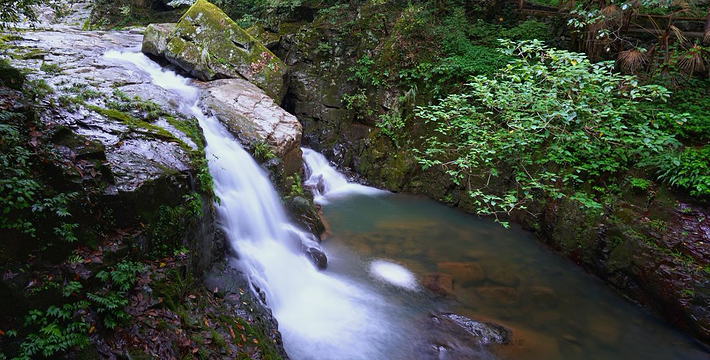 三隐潭是雪窦山中的奇境。隐潭之水从三个崖口腾跃而出,折成三个瀑布,1600多米的溪流在幽静的峡谷中依次形成上隐、中隐、和下隐三个深潭。​上隐潭流水两壁巨石矗立,石上青苔斑驳,坎边苍松伫立,瀑布循崖倾泻,高有40多米,水撞击两崖壁,震耳回响。​​中隐潭浓荫盖在涧水上,溪沟里块石纵横,流水绕石而行,然后一鼓作气喷出崖口,形成飘逸的飞瀑,山风吹起水沫,四向飞溅,分不清是雾是雨。​下隐潭的两个崖口构成两个天然瀑布,当地人称为“鸳鸯瀑”, 水流盘旋潭里,似乎难舍难分,很有点儿女情长的味道。