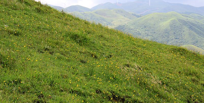 城步南山牧场位于城步县城西南80千米处,从县城乘车可直达山顶。景区位于雪峰山脉南段,绵延80余里,人称八十里大南山。她得天独厚,平均海拔1760米,象一块碧绿的翡翠,嵌镶在湘桂边陲的崇山峻岭之上。上有48坪,48溪,坪坪芳草茵茵,溪溪清流涓涓。