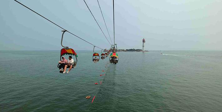 在仙螺岛西侧,一座七十米高的娱乐观光塔气势雄浑,冲天而起。以其为载体,设有蹦极、跳伞、漂流、观光等海上游乐健身项目,新颖、刺激,有惊无险。