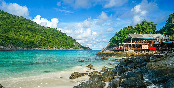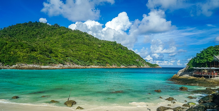 岛上不仅有优美完整的天然热带岛屿风光,珊瑚礁的海岸景色同样让人难忘。由于开发较晚,到此的游客数量比较少,与喧闹的普吉岛相较,这里沙滩的环境格外清幽,附近只有零星泳客、滑浪发烧友,及耳畔传来的浪涛拍岸声,俨然一副“世外桃源”的美好景象。 作为普吉新开发的旅游景点,皇帝岛以其精致而绝美的景色、纯净无污染的海水与沙滩、相对独立的地理位置以及奢华的配套服务得到了不少品味高雅的游客的青睐,其中尤以欧美游客为甚”这个名字。在景区度假村开发的期间,岛上仅仅砍倒了一棵树,移种了两棵树,足见皇帝岛自然风貌保持的完好。