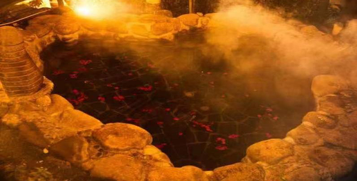 在温泉水中不断加入适量白酒,浸泡此泉,可促进血液循环,活络经脉。