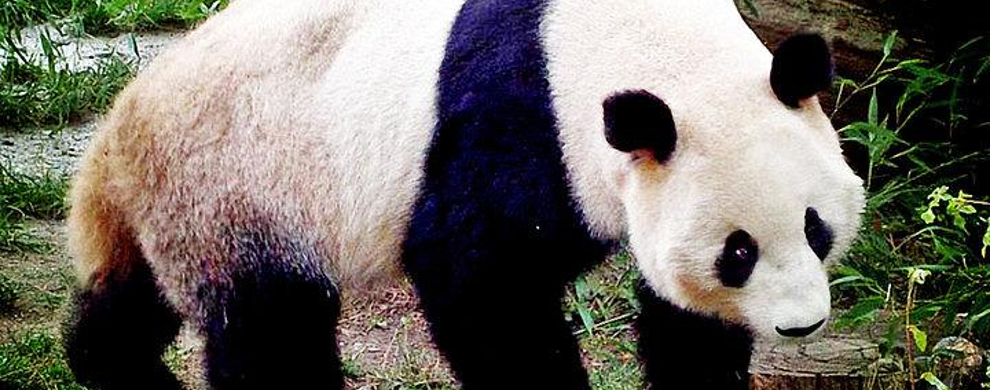 大熊猫体型肥硕似熊,憨态可掬,但头圆尾短。头部和身体毛色绝大多数为黑白相间,即鼻吻端、眼圈(呈“八”字排列)、两耳、四肢及肩胛部(横过肩部相连成环带)为黑色,其余即头颈部、躯干和尾为白色。腹部淡棕色或灰黑色。其体长120~180cm;尾长10~20cm,白色;肩高一般为65~70cm;体重60~125kg。前掌除了5个带爪的趾外,还有一个第六趾。背部毛粗而致密,腹部毛细而长。