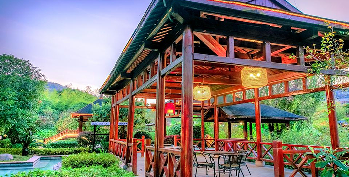 水岸芭蕉挡不住迷人景色,更有望山临水私家温泉生活,一边泡温泉一边感受鄂南特色文化。