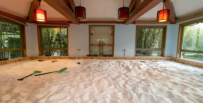 石板下面流淌着高温温泉水,热温泉水透过石板产生热疗,人躺在石板上,接受热石疗,可改善血液循环,祛风除湿,对胃寒、关节痛有很好的辅助*效。
