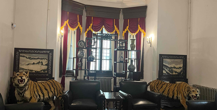 整幢小楼装饰精美别致,这里既有体现中国传统风格的描金彩绘,又有雕刻廊柱等欧式建筑艺术的鲜明特色。其室内陈设以法式家具为主,尽显豪华气派。