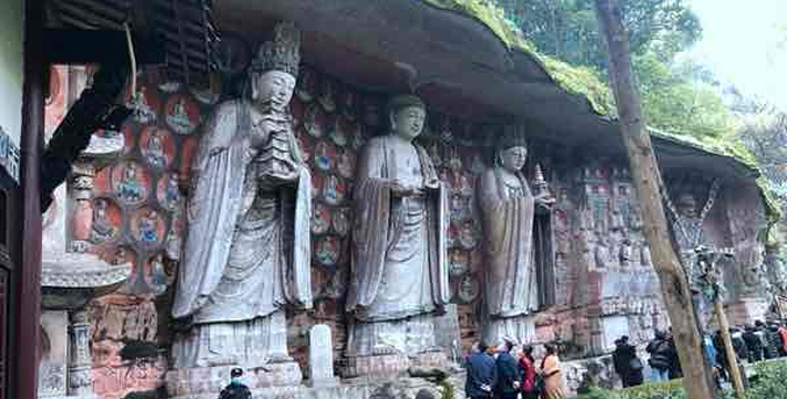 大足石刻素有“东方明珠”之称。唐末、宋初时期的宗教摩崖石刻,以佛教题材为主,是中国著名的古代石刻艺术