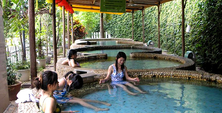 超音波喷射泉,伴随着动感的音乐和翻涌的温泉水,给身体一个通透的按摩享受。