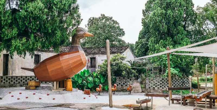 钓源古村位吉安城西17公里处,有一座充溢着古朴神韵的村庄——兴桥镇钓源村。延绵的岗地环绕幢幢青砖黑瓦的民居,仅北部小山上的林带,就有18000多棵葱葱笼笼的古樟树,分外醒目的是村祠“忠节第”前的4株古柏,直径1米有余,树龄近千年。