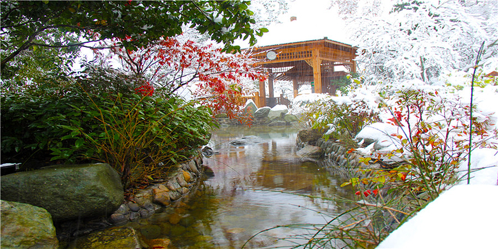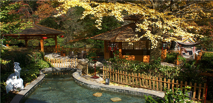 黄山温泉国际旅游度假区位于黄山风景名胜区温泉景区内紫石峰南麓、汤泉溪北岸,海拔612米。
