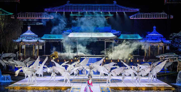长恨歌陕西旅游集团公司精心推出的中国首部大型实景历史舞剧《长恨歌》以唐代诗人白居易的传世名篇《长恨歌》为主题,实现了让“真山真水真历史”为我所用和深度挖掘的突破。而借助现代科技和艺术表现手段,使这部舞剧在形象上实现了全新突破。每年4月至10月的每个夜晚,舞剧《长恨歌》都会在华清池内准时上演,以其大手笔、大制作、大阵容为陕西旅游注入活力,给中外游客带来全新体验和愉悦的享受。经过数次改版和不断锤炼的《长恨歌》已然至善至美、臻于化境,每晚双场演出座无虚席,一票难求火爆异常,《长恨歌》这一堪称旅游文化瑰宝的惊世之作必将成为陕西乃至全国旅游的一张金边名片。