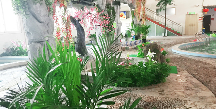 佳宾温泉馆内有10余个泡池,其中包含玫瑰浴牛奶浴土耳其亲亲鱼疗池等多种特色浴,分高中低三种水温,除此外馆区内还建有小游泳馆和儿童水上乐园,满足你的不同需要。