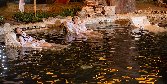 5.选择适应自身的高、中、低温度的温泉池,一般从低温到高温,每次不宜超过15分钟,及时补充水分。