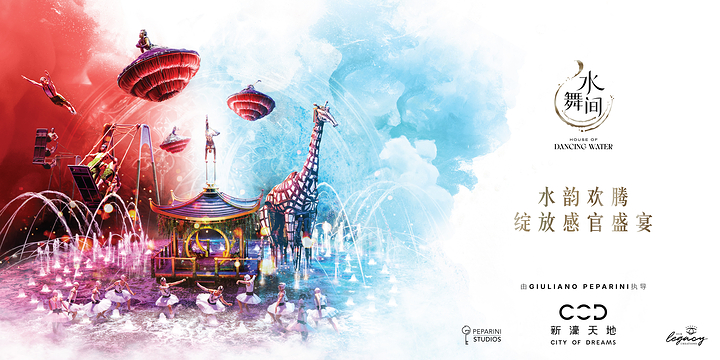《水舞间》,已于2010年9月17日在《水舞间》剧院盛大公演。此耗资超过20亿人民币的巨铸,由新濠博亚娱乐有限公司联*兼行政总裁何猷龙先生精心打造,德拉戈(Franco Dragone)先生亲自执导。水上汇演耗资巨大,由来自全球18个国家约77个国际汇演演员、以及约130个制作和技术人员经过了五年的筹划和两年的排练才得以和观众见面。此剧在表演时将配以令人耳目一新的服饰及独特的视听效果。整个大型水上汇演是一个穿越时空的史诗式爱情故事,将带领观众进入一个魔幻无边的奇妙国度,经历截然不同的情感之旅,从哀、怒的深渊出发,直至喜悦的高峰,徘徊在恐惧的边缘。这个超越拉斯韦加斯制作的惊世汇演,将带您进入前所未见的视觉震撼新里程。让我们一同莅临澳门新濠天地——水舞间!当你仅仅以为《水舞间》只是一个水上杂技的话,你就大错特错了。《水舞间》讲述的是一个穿越时空的爱情故事,以这个故事作为主线,把芭蕾、高空跳水,带你走进奇妙的玄幻国度,经历动人心弦的历险之旅。你见过相当于5个奥林匹克标准泳池的容量的水上演出场馆吗?而这个水上舞台可以在1分钟内变回陆地舞台。你见过从26.5米高空跳下的跳水表演吗?还有“高空电单车演出”、“人造吊灯”、“俄国式秋千”,一切动人心弦的演出,都只为保护未来世界的公主而战。