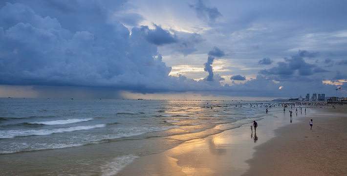 在市中心出发,从广东路直行至三岔路口,左转进入银滩大道。直行至第一个红绿灯,右转进入南珠大道。直行至海边,左转进入海景大道,直行至尽头可到达景区。