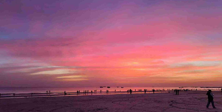 我们亲切称之为“海上森林”的红树林还是鸟类的天堂,景区的红树林里栖息着各种各样的海鸟,群群白鹭在林间觅食玩耍,怡然自得,偶尔被渔人惊起,百鸟飞翔的景象,蔚为壮观,在这里可以感受“落霞与孤鹜齐飞,秋水共长天一色”的原生态自然美景和美好意境。在金海湾郁郁葱葱的红树林和浩瀚的海天之间,是一望无际的迷人沙滩,金海湾的沙滩辽阔、纯净,虽然和与沙质细白著称的银滩相隔不远,却呈现出迥然不同的令人惊艳的金黄,远远望去像是镶在岸边的一条金色丝带,这片沙滩因此得名金滩,金海湾红树林生态休闲度假旅游区也由此命名,金滩绵延20多里,滩平坡缓,沙质细腻,因为红树林的原因有着丰富的海产品资源。退潮时宽广的沙滩上留下无数的贝类、螃蟹、沙虫、泥丁,当地的渔民男男女女都走出家门拿着工具准备去赶海,北海金海湾红树林—赶海。他们的工具分为两种锄头和铲子,男的力气大用锄头,女的力气小用铲子。看到沙滩上有小洞,洞口里有水并有小气泡,那就说明洞里有东西,这时要求动作非常快把小洞挖开,迅速掏出里边的东西,有时是沙虫,有时是贝类总会有意想不到的惊喜哦!