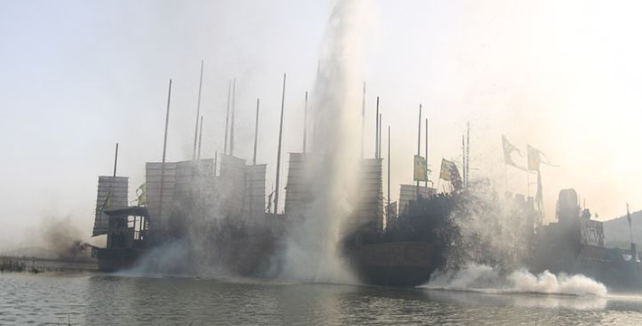 “八百里水泊”——山东东平湖畔的东平水浒影视城。东平水浒影视城被评为2010、山东旅游年度十佳景区。据悉,东平当地打造的巨型宋代战船将达15艘之多。山东东平是新《水浒》的拍摄地”。业界人士认为,山东戏,山东人、山东景,山东造。水浒古镇是水浒影视基地的龙头项目,东起255省道,西至东平湖湖岸线,南起大清河,北至老湖镇朱桥村,总规划面积约5平方公里,计划总投资12亿元,由东平县水浒旅游开发有限公司投资兴建。项目划分为入口区、引景区、水浒影视城、水浒风情展示区、中心码头服务区、景观地产区六大*能区。