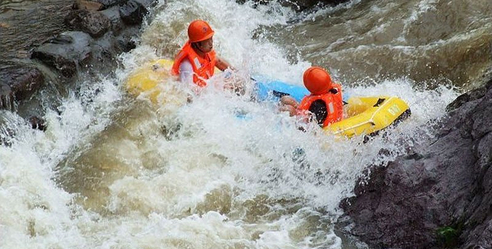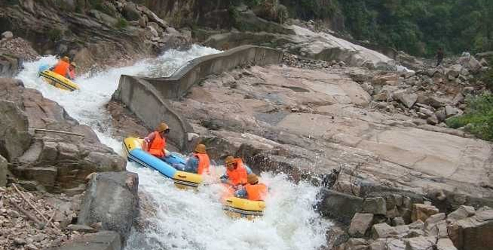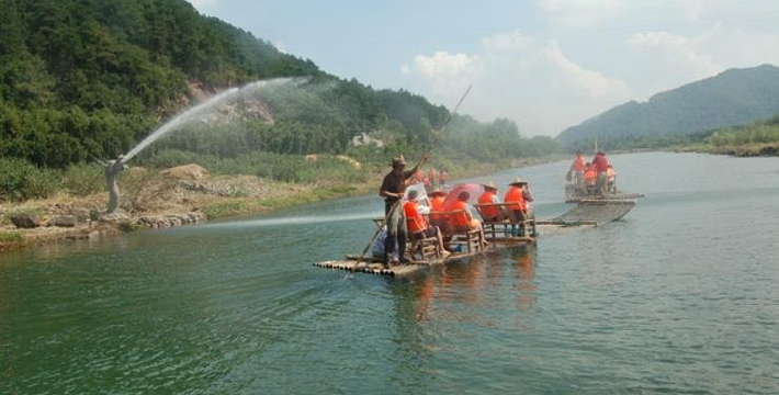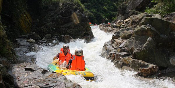 大泉坑漂流景区位于奉化市大堰镇箭岭村。距宁波市区50公里,距奉化市区20公里,是久居都市的现代人体验山水,回归自然地绝佳去处。大泉坑漂流全程2.5公里约一个小时,总体落差50余米。拥有飞流直下、洞中探险、与浪共舞、水上越野等十几个景观节点。纵观大泉坑漂流,具有溪道曲折、落差巨大、水流清澈等优势。这里山水交融、空气清新、溪中游鱼可数、林间飞鸟相呼、溪谷、奇岩、幽潭、古桥、古庙、顶公尖山等众多景点,在漂流途中可慢慢欣赏。全程2.5公里,总体落差50米,河道整体平缓度与惊险度均适中,适合绝大多数的游客,既可享受泛舟水上的乐趣,又可体验浪遏飞舟的惊险。漂流途中设有别具一格的水幕帘,让你不去花果山就可领略“水帘洞”。倾泻而下的水幕帘让你的漂流旅程充满惊喜与欢笑。