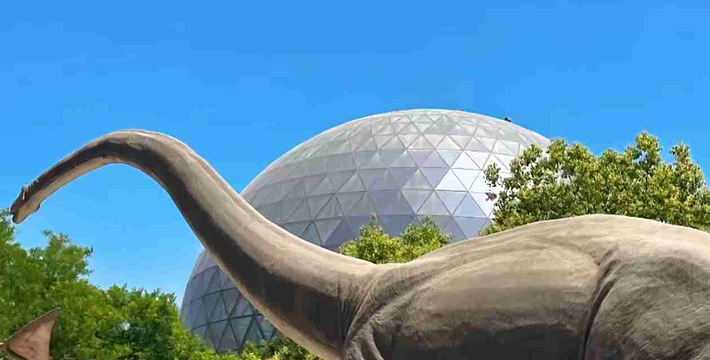 陕西自然博物馆位于西安市长安南路88号舟形环岛之上,北望钟鼓楼,南眺终南山,环境优雅、交通便捷,是陕西省投资集团公司组织建设的省重点建设项目。占地面积110亩,总建筑面积16000平方米,半圆型半地下建筑,共三层,内设12个展厅,包括自然馆和科技馆两个独立建筑。观众将在自然馆内看到瑰丽神奇的自然现象,了解几万年来地球生物进化的传奇历程,探索自然的奥秘,揭示生命的轨迹,了解自然。