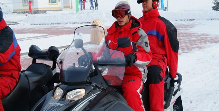 豪华的雪地摩托,让你能够急速穿越整个林海雪原。
