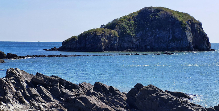 獐岛],位于丹东东港市北井子镇7海里的南黄海海面之中,景区面积15平方公里,其中陆域面积2平方公里,闻名遐迩的避暑、观光、休闲、度假旅游胜地。獐岛由一陵六石宅、四礁组成,陵石横东西,蹲卧两翼,礁居其间,陆域面积2平方公里,岛民100多户,500多人。海岛保留了古老的渔村,被专家称为“旅游处女地”。山石犬牙交错,有老雕窝、鹰嘴石、老猪礁、乌龟砣子,形态逼真,灌木碧野,曲径小路贝壳铺盖,别有情趣。登岛主峰远眺可见孤山,今日獐岛,满山绿树成林,郁郁葱葱,遮天蔽日。树种多样,有经济林、用材林、特用林、观赏林以及海岛防护林,形成了以木麻黄为主,桉树、黑荆等相杂的常绿阔叶混交林林带。还引进了北美鹅掌楸、阿尔巴尼亚海岸松、 獐岛环境优美,气候宜人,空气清新,风光旖旎。山青崖秀,海天相连,一望无际。碧波汹涌,浪击怪石,成群的海鸥翱翔蓝天,嬉戏碧水,追逐波浪。日则白帆,云朵点点,夜来渔光,星光不辨。獐岛金滩浴场集蓝天、碧海、绿岛、墨峦、海堤为一体,滩面平坦,白沙盖石,是天然海水浴场。漫步沙滩,礁岩天成,峰回路转,目不暇接。游客在这里观潮、听涛、赶海、洗浴,领略海岛美景,尽情享受大自然的恩赐。獐岛万亩环岛滩涂是水产养殖的天然沃土四面环海,盛产对虾、梭子蟹、海螺、杂色蛤、文蛤以及各种鱼类等上百个品种,且以鲜活著称,为美食家赞不绝口。岛上气候宜人,海风轻飘,云雾缭绕。美丽的月亮湾、双珠滩,浪缓沙柔。也是浅滩拾贝、傍晚垂钓、大海冲浪、晨观日出、夜伴听涛的理想去处,