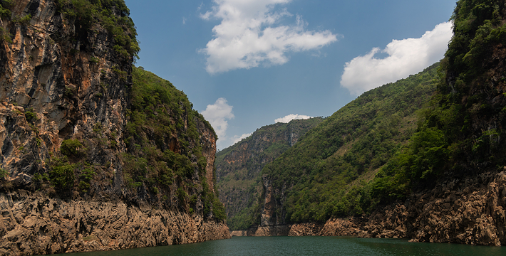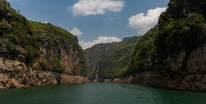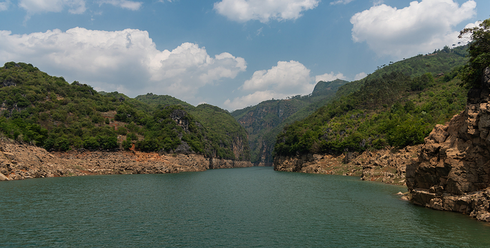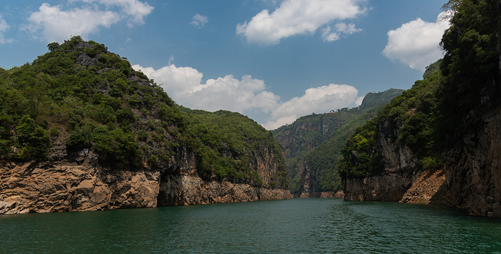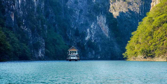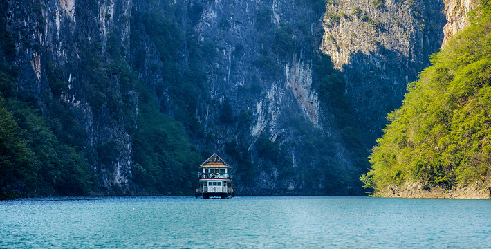 雄奇清幽的鲁布革峡谷,是鲁布革水电站的蓄水库,原是黄泥河的一段凶险的河道,雄鹰都不敢误飞峡内。修筑水电站,高峡出平湖。在峡湖中泛舟漫游如入仙境。景区由雄狮峡、滴灵峡、双象峡等组成,峡湖两岸群山,有的壁立千仞,有的危岩耸立,有的绝壁临水而立,一串串钟乳石倒垂于水面,奇形怪状,有的似巨型葫芦,有的像一串串葡萄。峡口“美女梳妆”迎宾送客;“雄狮”,“猴子捞月”、“龙宫悬笱”栩栩如生。第二峡名为“滴灵”(布依语言为“猴子”),绿荫蔽日,时有金丝猴出没。绕过“象鼻”,即双象峡,峡内“万年灵芝”惟妙惟肖。
