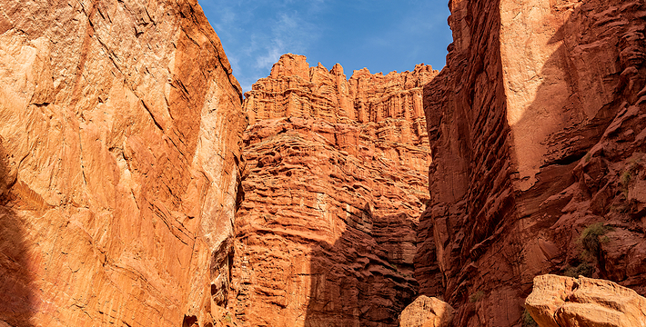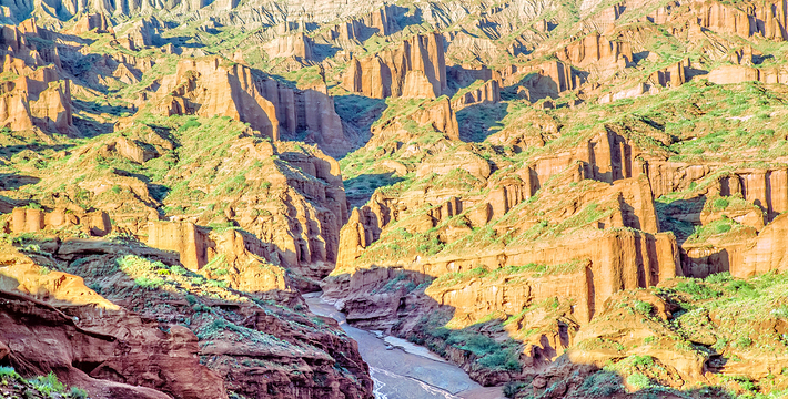 温宿大峡谷位于温宿县境内天山山脉中段南麓前山区博孜敦柯尔克孜民族乡境内,大峡谷距温宿县城东北约80公里,距国道314线30公里左右,总面积200平方公里。这里曾是通往南北天山古代驿路木扎特古道的必经之地,当地称之为“库都鲁克大峡谷”,维吾尔语意为“惊险,神秘”。。温宿大峡谷有中国罕见的远古岩盐地质绝景、中国西部奇特的雅丹地质怪景、中国独有的巨型岩溶蚀地质秘境,堪称新疆“活的地质演变史博物馆”。进入景区,犹如进入了一片精美雄浑的自然画廊。峡谷中山壁岩层分布清晰,受挤压形成的褶皱,弯曲的线条十分清晰,断裂的岩石夹在山壁岩层中,在历经亿万年的风雨侵蚀后,形成了绝壁高耸、奇峰兀立、形态各异、嶙峋怪异、色彩浓烈、千姿百态、五彩纷呈的奇特景观。温宿大峡谷是2600万年前内陆湖泊沉积的地层。由距今一亿多年前的中生代的白垩纪,经过亿万年的洪水、雨水冲刷和劲风吹蚀共同作用而形成的。全景为岩盐喀斯特地貌和峡谷雅丹地貌为代表的地质遗迹和地质景观。目前大峡谷开发的路段沟长约10几公里,南北向,宽处约200至300百米,狭窄处仅可一人通过。