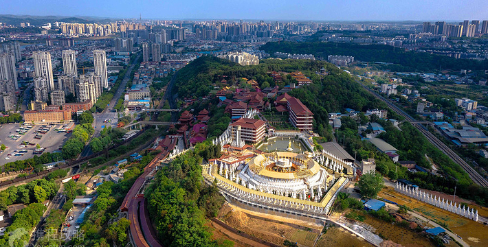 新建的圣水寺位于西北部宝成铁路西侧山岗。始建于20世纪80年代,恢宏于90年代。开始系群众自发修建的一座主要供奉观音菩萨的小庙(即后来的观音殿)。其后果忍和尚自成都昭觉寺到绵阳弘扬佛法,得到人民政府和广大佛教信徒的支持,采取“政府划拨土地,民间乐捐资金”的办法,逐步扩大寺庙规模。