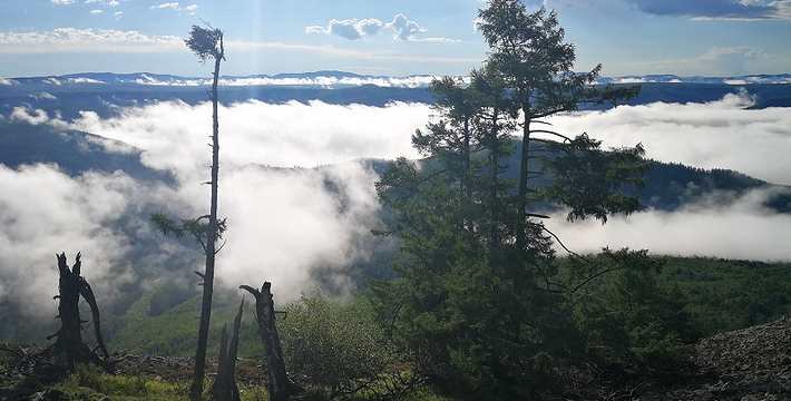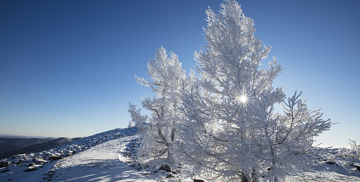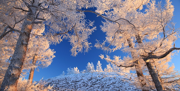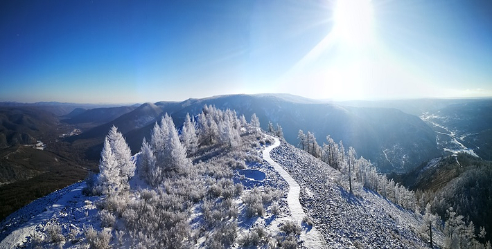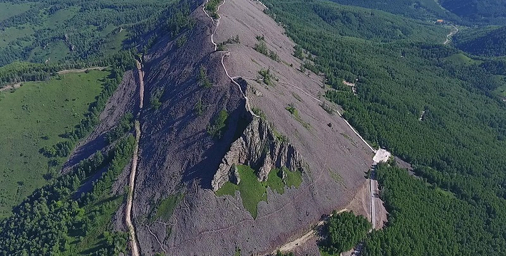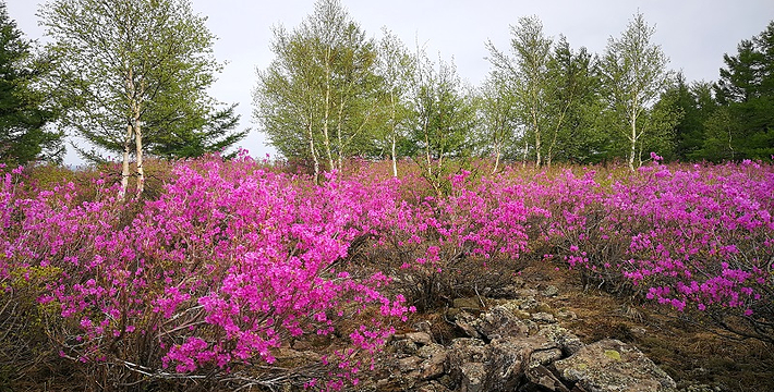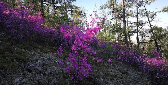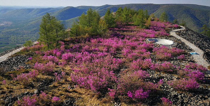 沿着弯曲陡峭的盘山公路前行,挺拔苍劲的兴安落叶松、婷婷玉立的白桦山杨、千姿百态的黑桦,您会发现随着海拔的升高大兴安岭森林植被呈梯次分布。走出林海,满山堆积的奇石让人震撼,冰川遗迹上奇石苍松遍布。步行登临峰顶,大兴安岭浩瀚林海、洮儿河水蜿蜒曲折、蒙古高原异域风光尽收眼底,“会当凌绝顶、一览众山小”,祖国山河无限好的意境油然而生,被誉为“兴安之颠、嫩江之源”。春天满山杜鹃争奇斗艳,仲夏雨后云雾缭绕,秋来层林尽染五彩宾纷,冬天银妆素裹原驰蜡象,好一派北国风光。主峰东侧的滑雪场高差近500米,雪道长3000多米,积雪期长达7个月(从当年10月到来年的5月),能满足各个层次冰雪运动和滑雪爱好者的需求。