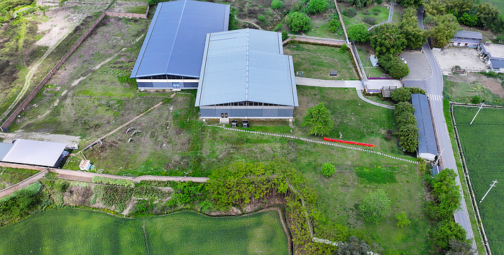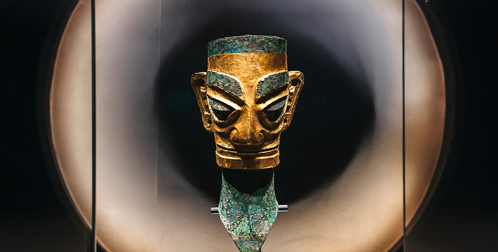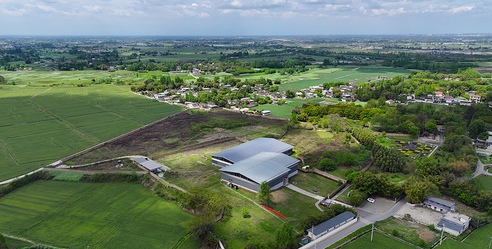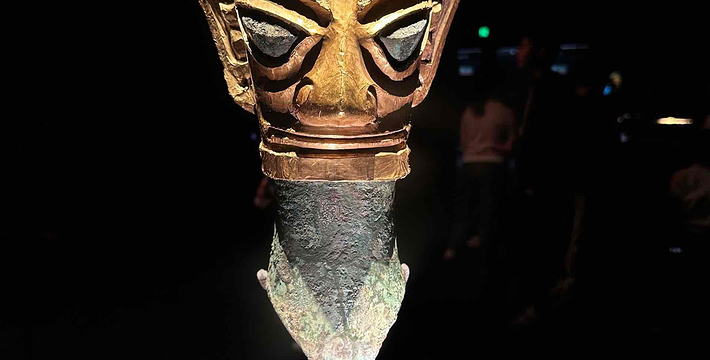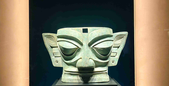 三星堆博物馆位于全国重点文物保护单位三星堆遗址东北角,地处历史文化名城广汉城西鸭子河畔,是我国一座在弄的现代化历史博物馆。博物馆于1992年8月奠基,1997年10月落成开放。主馆面积7000平方面米。馆体外形追求与地貌、史迹及文物造型艺术相结合的神韵,融原始意味和现代气意为一体,力图表现三星堆文化的苍古雄浑及三星堆文明的博大精深。馆内展厅面积达4000平方米,展线长逾800米,以《古城古国古蜀文化陈列》为主体内容,全面展示三星堆遗址及遗址内一、二号大型商代祭祀坑出土的陶器、玉器、骨器、金器和青铜器等上千件珍贵文物。