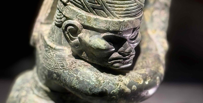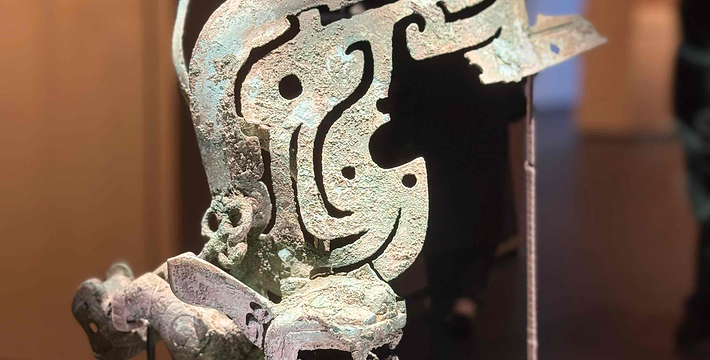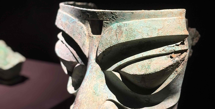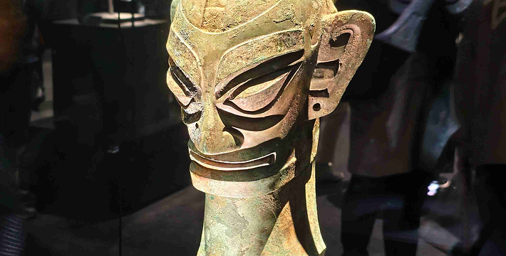 有造型各异青铜人头像,出土时面部均有彩绘,而且在耳垂上穿孔,用以挂戴耳环耳饰,风格独特。