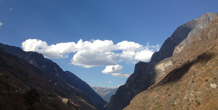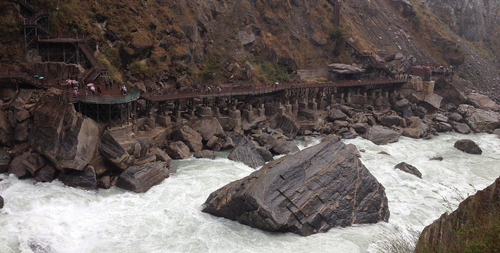 从虎跳峡镇过冲江河沿哈巴雪山山麓顺江而下 ,即可进入峡谷。上虎跳距虎跳峡镇12公里,有公路直达,峡宽仅30余米,江心有一个13米高的大石——虎跳石,相传猛虎曾借此石而跃过大峡。