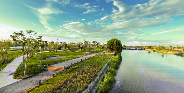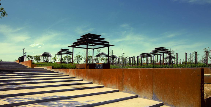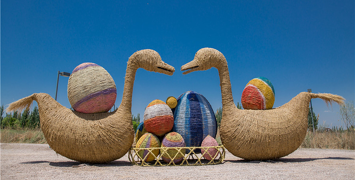 华夏河图.银川艺术小镇主要由银川当代美术馆、艺术家村落、鱼塘湿地公园、惠农渠公园、石刻公园、雕塑公园、禾乐村七大块组成。银川当代美术馆是华夏河图首期项目主体建筑之一,由著名的WAA建筑设计事务所设计,设计灵感来自于因地质的变化导致的岩石层皱褶肌理,阐述时间流逝和历史积淀的感念,、展示“中国+伊斯兰”当代艺术为主轴的美术馆。艺术家村落是与国际著名艺术机构、策展人合作,长期举办艺术创作、学术交流及展览活动的文化艺术聚落,是国内外年轻艺术家、策展人员以及艺术机构提供驻留计划的场所。鱼塘湿地公园毗邻鸣翠湖湿地公园,结合对鸣翠湖国家湿地公园南区的保护性规划要求,严格保护湿地的生物物种多样性,完美呈现明显湿地特征。在这里,纵横的栈道、小桥,游嬉于芦苇湖水间,观鸟、赏鱼、听风、看水,相信您一定会不需此行。惠农渠公园始建于1726年,全长130余里,有近300年的历史,结合水系的自然机理,创造丰富的水系空间形态,是拥有悠久历史并作为潮流的露营地。在配合首期开园的同时,景区斥巨资大力推出富有鲜明特色,集游客观赏、娱乐、互动、体验为一体的大型马戏主题表演——俄罗斯大马戏,此次大马戏活动规模在中国西北属首举,马术演员们是来自世界一流的马术世家——乌克兰的