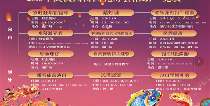 2、2019年2月5日至2月19日期间(初一至初十五)合作的大武汉旅游年卡、武汉城市圈旅游e卡通持卡游客入园时间为08:30-16:30,每人每天限入园一次;16:30-21:30持卡游客需正常购买武汉园博园门票入园。除上述时间段,其他时间武汉城市圈旅游e卡通、大武汉旅游年卡正常使用,每人每天限入园一次。