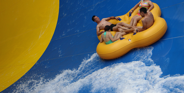 顺着蜿蜒曲折的封闭滑道,从陡坡中漂流而下滑入来自星星的五彩台风眼中,旋转数圈徘徊后滑入水池,离心力滑行轨道的独特设计,造就了它不一般的魅力,让你感受在海底漩涡中激流勇进、行云流水的刺激感受。