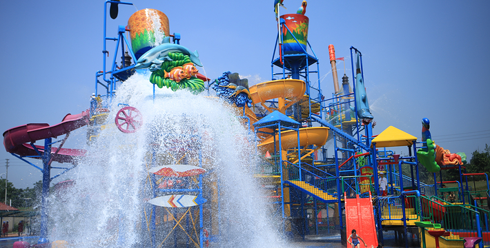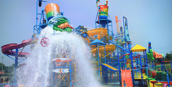 你可以选择从各式各样的滑道直入水中,或是直接站在水里,等待翻斗桶从天而降的巨大水花浇个透心凉。感受欢乐的风情,尽情畅玩!