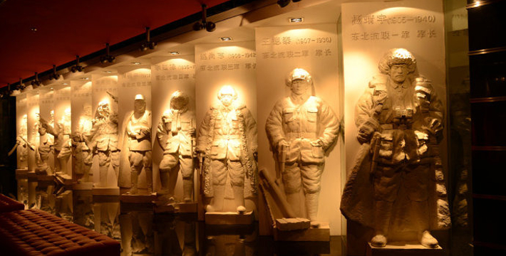 东北抗联史实陈列馆:位于辽宁省本溪满族自治县县城小市汤河东畔。辽宁是东北抗联活动的重要区域,本溪则是抗日民族英雄杨靖宇率领的抗联一军一师抗击日寇的主要战区。。东北抗联史实陈列馆于2005年7月29日正式开工建设,建筑面积5040平方米,其中陈列面积3000平方米,共分序厅、主展厅、英烈厅三个部分,展厅共有12个展室。东北抗联史实陈列馆于2005年7月29日正式开工建设,建筑面积5040平方米,其中陈列面积3000平方米,共分序厅、主展厅、英烈厅三个部分,展厅共有12个展室。陈列布展以“林海雪原,抗联英雄”