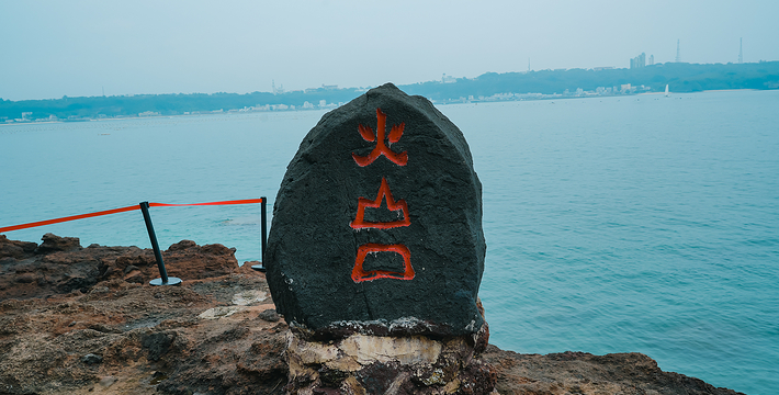 从检票口到景区步行大约要15分钟,也可以坐观光车代步,停在鳄鱼山灯塔处,从灯塔处沿左边木质阶梯走到山底,就可以看见鳄鱼山火山口遗址了,它是涠洲岛五个火山口之一,最近一次喷发距今一万年,当时喷出的岩浆布满了狭长的海岸,周边形成一片褐红色的火山岩。