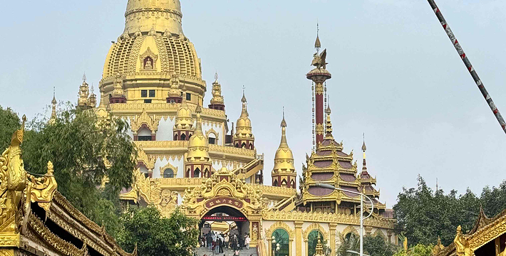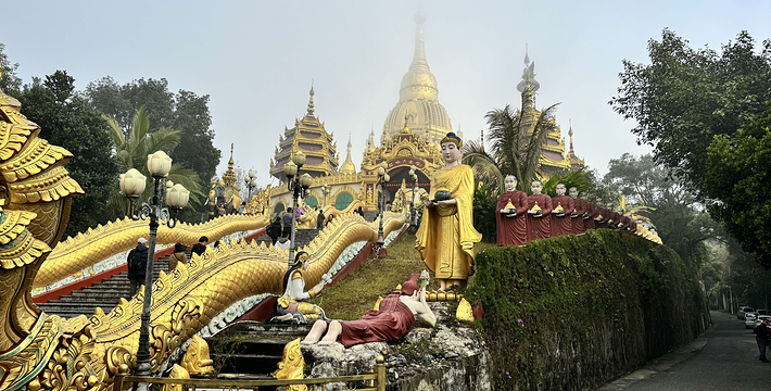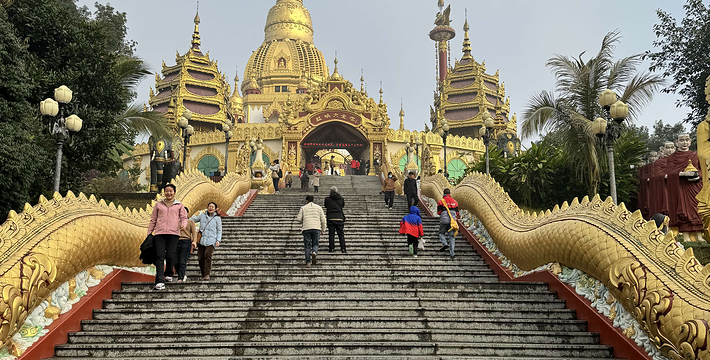 勐焕大金塔座落在芒市东南部海拔一千零七十九点六米的雷牙让山顶。传说“释加牟尼”生前转世为金鸡[阿鸾]时曾生活于此地,佛涅槃后数百年,佛教弟子“召罕大”[阿罗汉]为传播佛祖教义亲临此山修炼,为“召罕大”有个修练的好环境,野草和荆棘全部让开,故称为雷牙让山,意为野草让开的地方,尔后在此山建一佛塔,自古以来是人们公认的佛教圣地之一。
