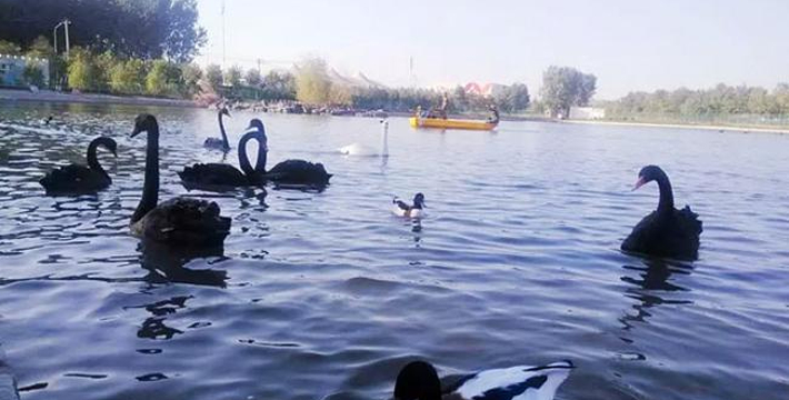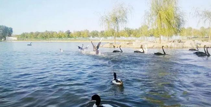 天鹅湖动物乐园位于大南湖公园西南侧,占地320亩,是黑天鹅的栖息地,还有68种珍稀野生动物,共1600多头羽。当天上午,美丽的天鹅湖畔,游客们或泛舟湖中,或与小动物们倾情互动。一群天鹅悠闲地在湖中游荡,时而引颈昂首,神气活现;时而曲颈低头,娴雅沉静;几对天鹅伴侣出双入对,窃窃私语,高挑的脖颈围成一个心字形状;湖畔,有几只天鹅正在休息,或疏理自己黑亮的羽毛,或把红红的嘴巴插进翅膀里小憩;更多的天鹅则在湖中翩翩起舞,伸展着宽阔的翅膀拍打水面,旋转、跳跃,轻盈的舞姿高贵典雅。