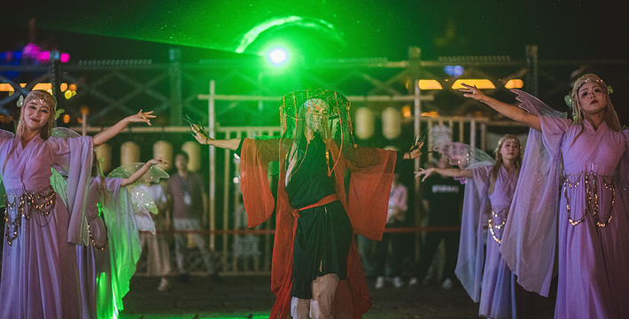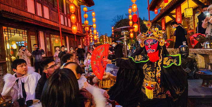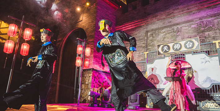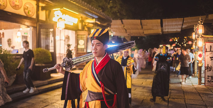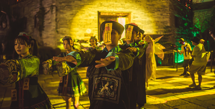 每天近30场流传千年的民俗演艺带你跨越时光,三兄妹天师台街头卖艺,民间艺人古戏台上演杂耍,武养馆内上演原创爆笑喜剧《嘻哈道》,为你讲述街舞少年拜师学艺,与师兄弟们一起守护宝藏,终学有所成、开悟成道的故事。