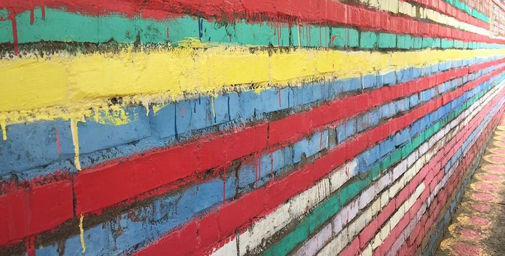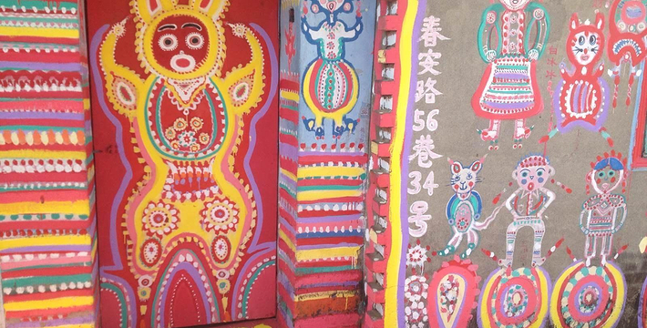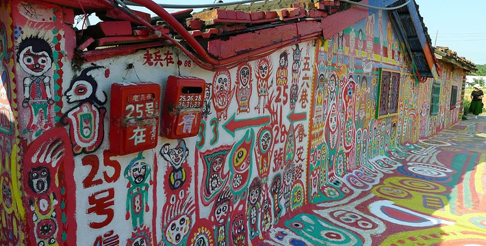 位于台中市春安里的眷村被人们赋予了一个好听的名字“彩虹眷村”,并成为了当地的热门景点,每年吸引世界各地的人前来参观,而香港籍退伍老兵黄永阜则被人们亲切地称为“彩虹爷爷”。彩虹爷爷的故事黄永阜原籍香港,年轻时入台当飞行员,后负伤独居眷村,晚年生活苦闷。时年86岁的他为打发时光开始将小时画画的技艺拾起,在房前屋后涂涂抹抹,排解思绪。没多久,村内巷弄的地面、墙壁、门窗被他笔下色彩艳丽、俏皮夸张的彩虹、花朵、动物、名人肖像等画作铺满,原本破旧阴暗的眷村变成了一个五彩缤纷的童话世界。很多摄影爱好者、文艺小青年多会来这里拍照留念。彩虹巷村口那条数十米长的巷道是“彩虹爷爷”。这里的画色调明艳、热烈,地上用油漆涂成了红底,上面用白色和黄色等勾勒出小鸟、小鸡和兔子等造型。墙上则分区块时而以蓝色为背景、时而以白色或黄色为背景,上面画了数百卡通造型的猴子、猫和儿童。寻找彩虹爷爷黄永阜先生的家就在这条巷子里,很容易就可以找到,因为他家的大门上已经贴满了游客留给他的字条,上面写满了祝福的话语:“彩虹爷爷,您的创作让平凡的眷村有了不平凡的色彩”,“画得好漂亮,请继续缤纷下去吧。”“彩虹爷爷”不时会应游客的要求走出家门与大家合照。他也不介意游人走累了,推开房门,参观他十几平方米的老屋,尽管房子不大但墙上也画满了几十个卡通人物和动物造型,床上则摆着各式各样的木版画,而桌子上是各种水彩笔、毛笔和纸张。他说,现在时而也会看到来自大陆和香港的游客前来参观和拍照。画画已经成为黄永阜生活的习惯,每天都要画,并且会一直画下去。