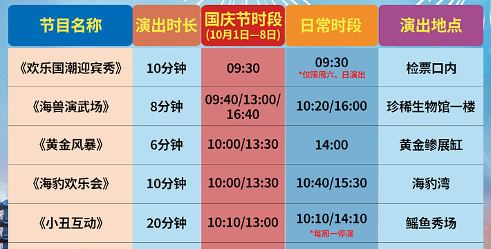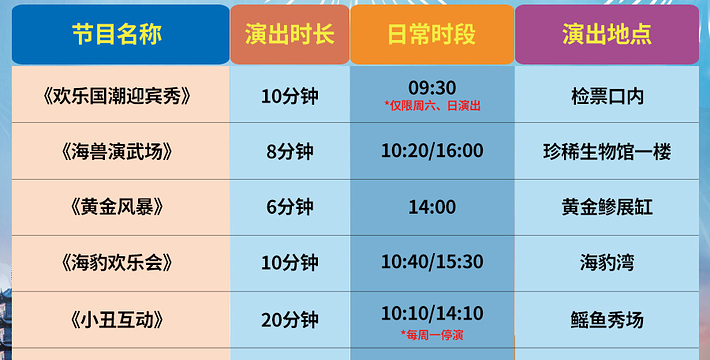 最晚取票时间:15:30,海洋秀场最晚一场演出15:40开始
