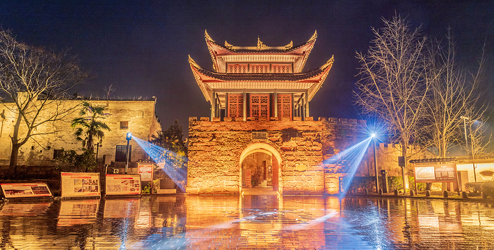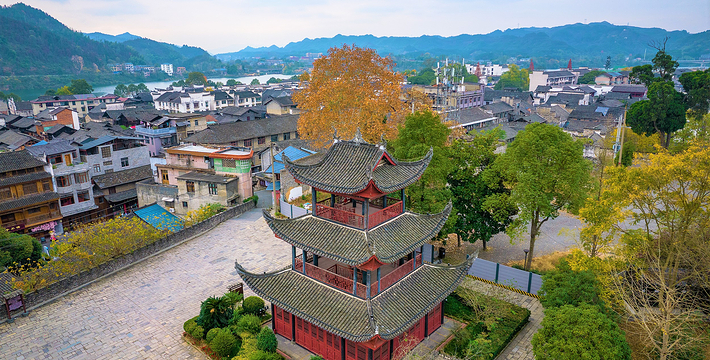 黔阳古城位于洪江市治所在地,以侗族首领杨再思、诗家天子王昌龄、民国特务头领戴笠为代表的官道文化极具旅游价值。黔阳古城跨清水江、舞水、沅水三江六岸,山水之雄胜甲于湘西,现为全国重点文物保护单位和国家AAAA级旅游景区。大黔阳古城包括明清黔阳府城、大唐叙州侗王城、秦汉镡城卫城、芙蓉楼园林、犁头嘴稻米古道碑、炮坡界古城堡、水口山东关门等景城一体化景点相互呼应。四桥五楼夜景亮化、河街酒吧一条街、国际稻米美食城及水上游轮航线等旅游业态不断完善,黔阳古城夜市已经成为大湘西旅游一张新兴名片。