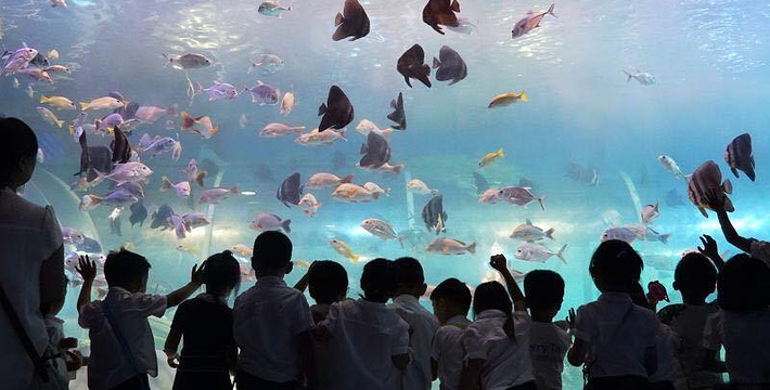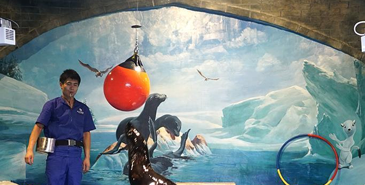 馆内划分为七大主题区域,开设海洋剧场,海狮表演,海底剧场和12个海洋互动舞台。