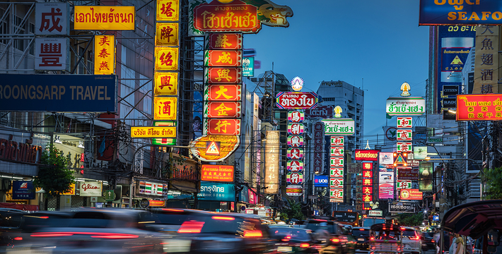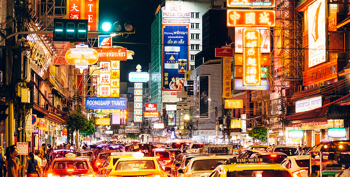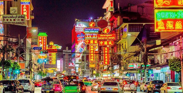 曼谷唐人街(China Town),在泰国首都曼谷市区西部,是城区繁华的商业区之一,其规模及繁华程度,在东南亚各地的唐人街中,堪称魁首。它是老曼谷的街区之一,已有近200年历史。这里的房屋大都比较古旧,但商业却异常繁荣,经营者几乎全是华人、华侨。